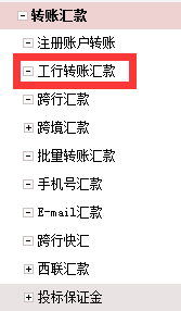 可以在左边的菜单中选择“工行转账汇款”或者右边的“转账汇款”都可以进行工行内部的转账汇款,其他行的不能选这个哦。