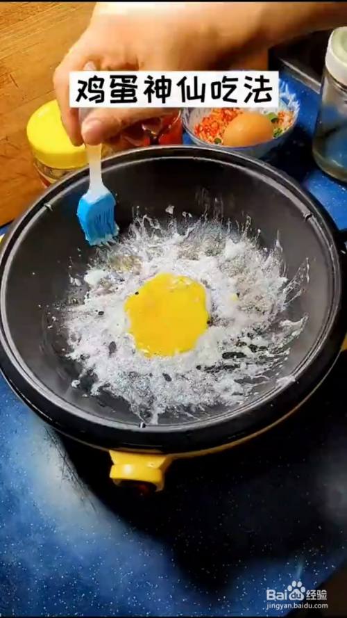 蛋黄搅拌均匀倒入锅中间,蛋白拿刷子锅外边,煎熟即可