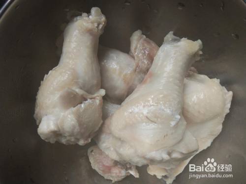 然后,在鸡腿上划几道口子,用料酒腌制十五分钟左右。