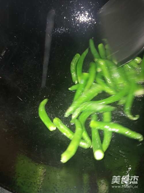 锅加热后加入食用油,油热后加入杭椒煸炒一会