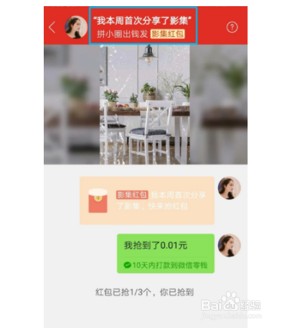 点击分享得红包,如下图,看到购近我本周首次分享了影集