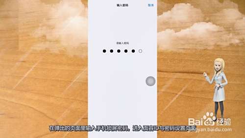 在弹出的页面里输入手机锁屏密码,进入面容ID与密码设置页面。