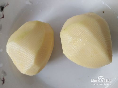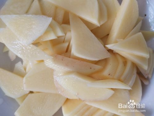 土豆,100克。洗净,去皮。切成菱形块儿,待用。