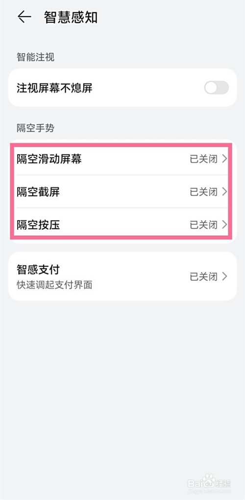 第三步,开启【隔空滑动屏幕】、【隔空截屏】、【隔空按压】开关。