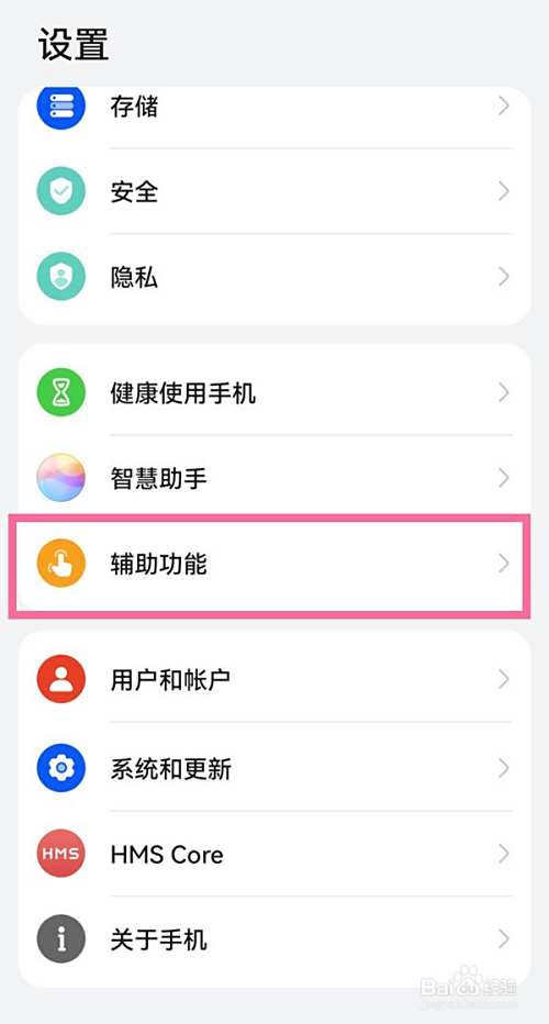 第一步,在手机桌面设置菜单中点击【辅助功能】。