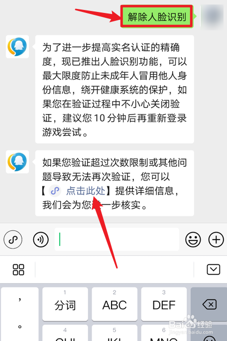 之后输入解除人脸识别,点击【点击此处】。