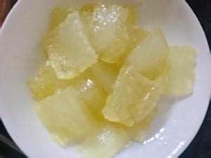 热锅凉油放入焖子不要动看起嘎反面,煎好的焖子盛出装盘