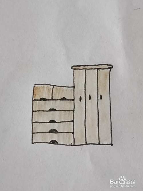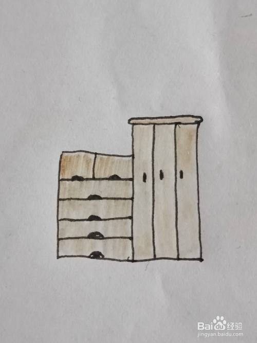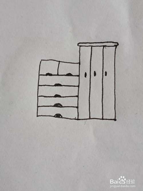 接着再用线条把两个柜子都勾勒一下,如图所示。