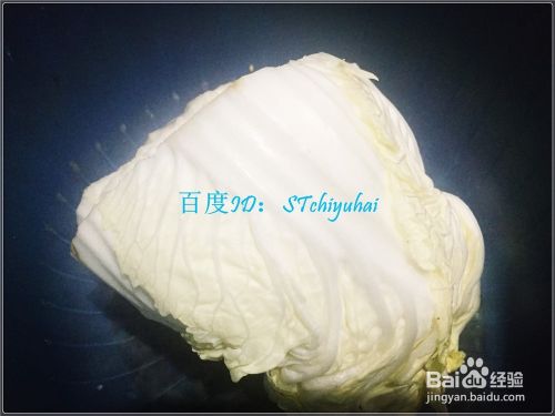 准备一棵白菜,横切一般,取末端菜叶部分,将其洗净,然后竖直切成丝条状。