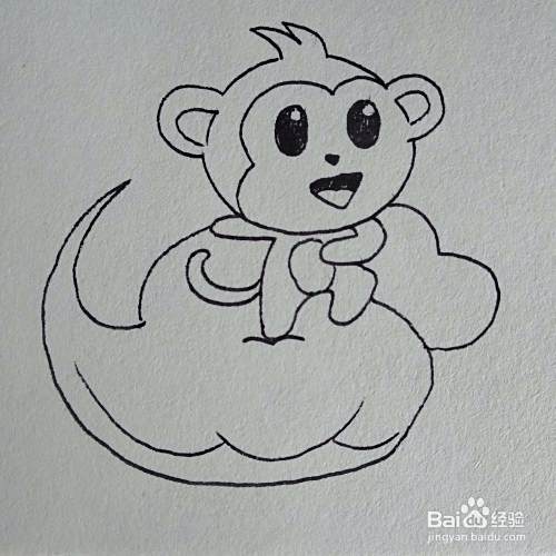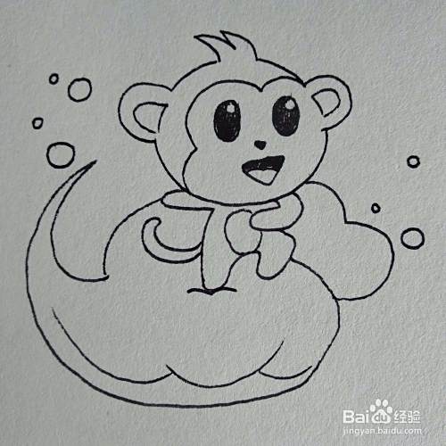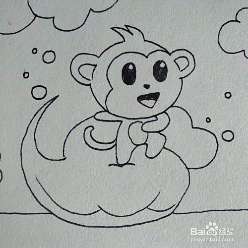 然后画出猴子站着的一朵大白云,有些腾云驾雾的感觉。