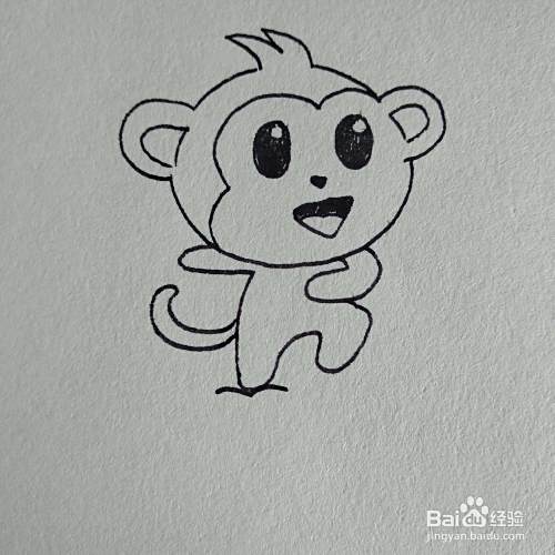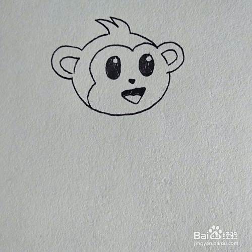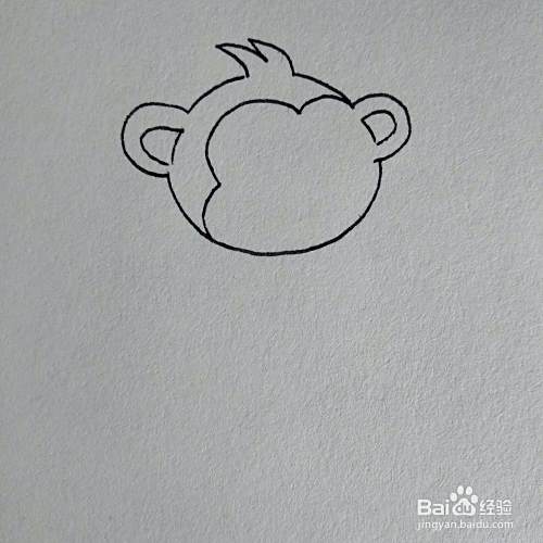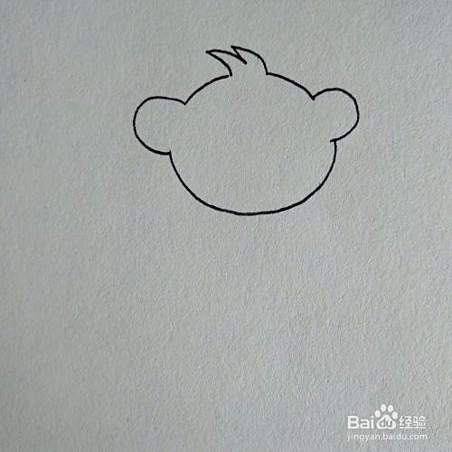 先画出猴子的头部轮廓,注意画出头发和耳朵轮廓。