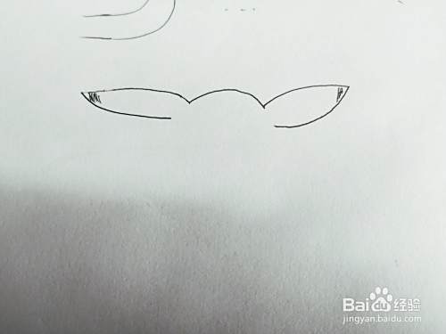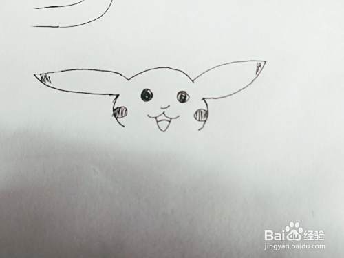 第二步,我们来画卡通皮卡丘的两只眼睛和嘴巴,如下图