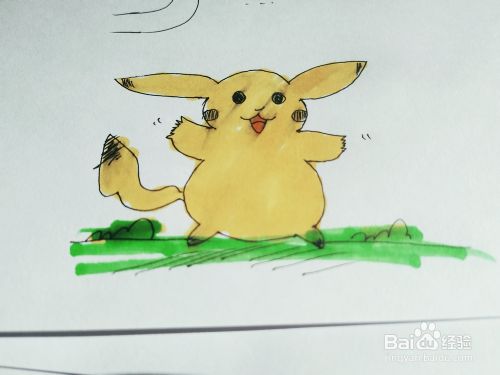 第五步,我们来拿出画笔为卡通皮卡丘涂上颜色,如下图