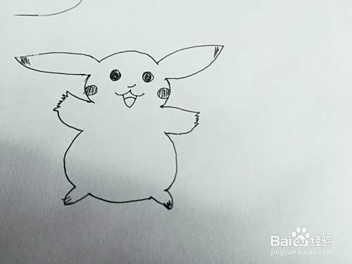 第三步,我们来画皮卡丘的身体轮廓,如下图