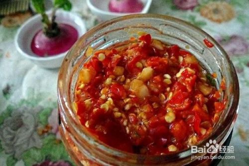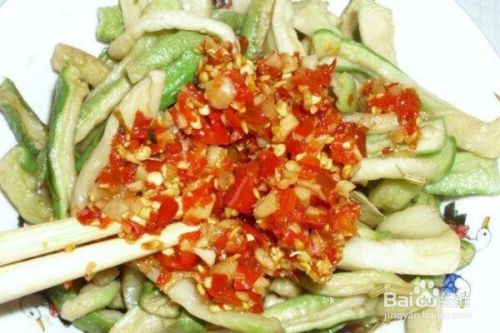 取一个容器,放入辣椒碎,盐、白糖、味素、酱油,做成拌料。