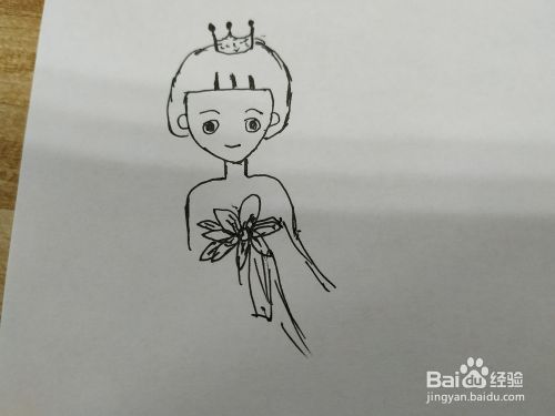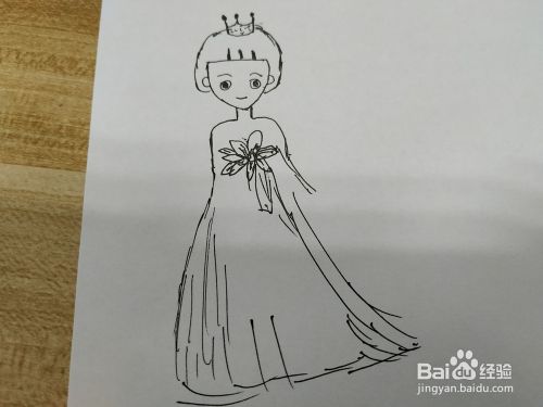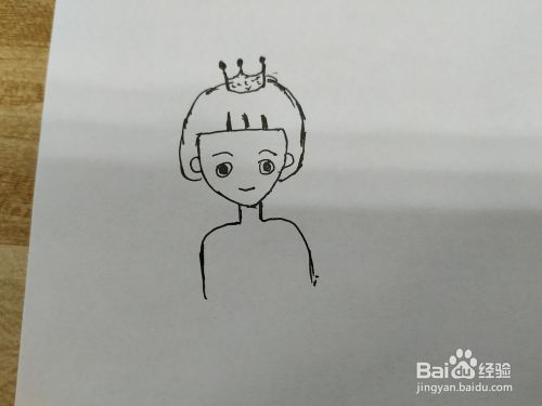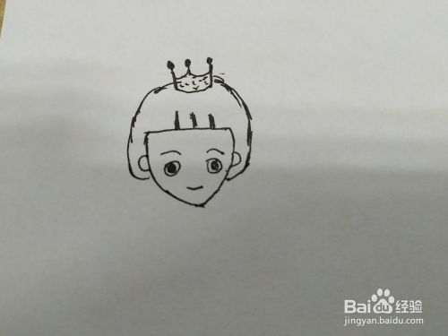 然后我们为漂亮的小姐姐画上头上的头发轮廓和皇冠。如下图