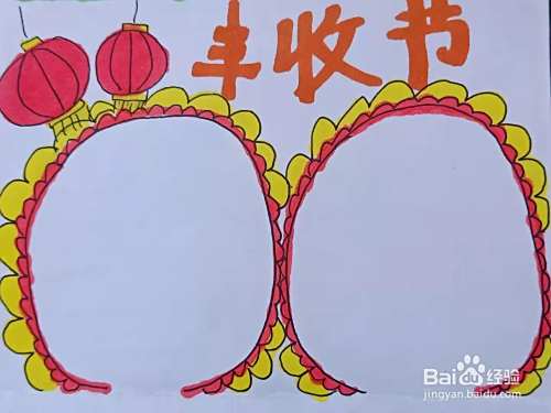 5. 接着,在手抄报上写出大标题“丰收节”。