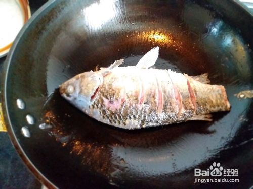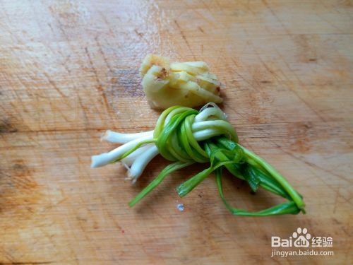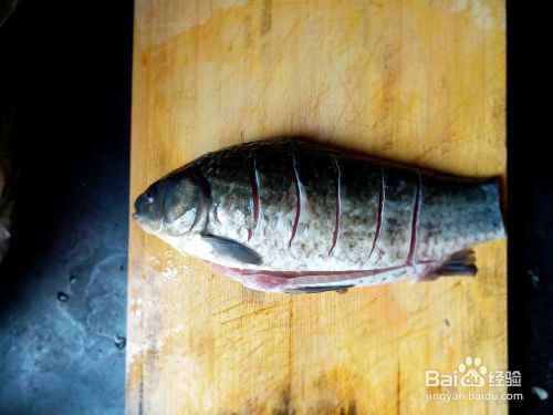 1鲫鱼清理好洗净,在鱼身划上几刀,晾干水份。姜切片,小葱洗净挽成结。