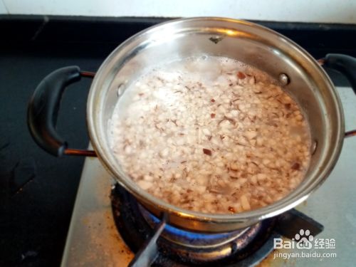 6待到大米熬至无白心后(大约需要二十分钟左右),加入香菇粒。