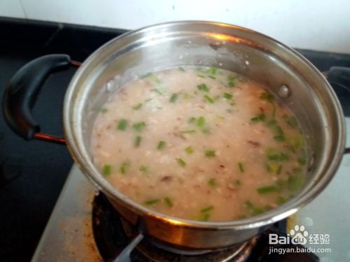 8肉末煮熟后(大约需要七八分钟),撒入些许小葱叶。