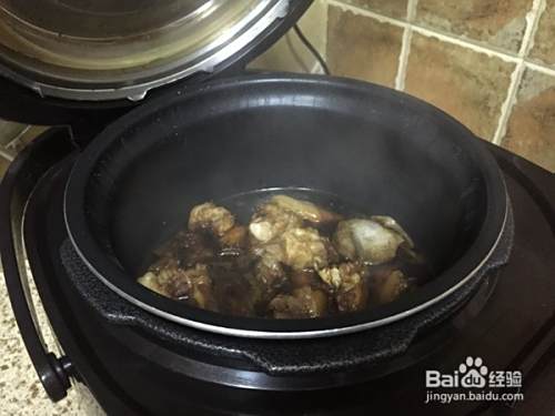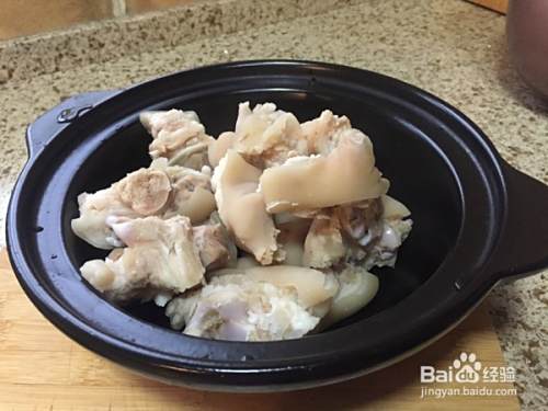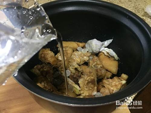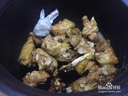 搅拌下,再加入适量的水,大概淹没猪蹄;