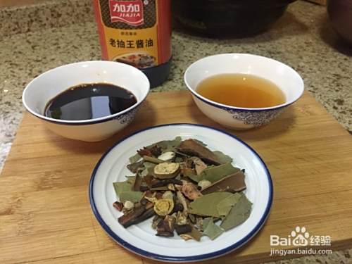 准备好各种调料,卤味(市场有现卖的)、料酒、老抽、生抽;