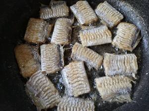 锅中适量油(比平时炒菜的油要多一些),烧至5-6成热,下入腌制好的带鱼,中小火煎。