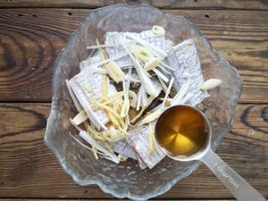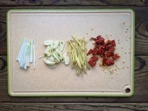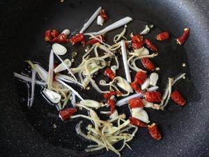 葱姜切丝,蒜切片,干辣椒切段备用。