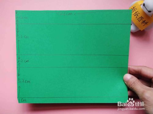 沿着画线折成如图的样子,在宽1cm处涂上胶水。