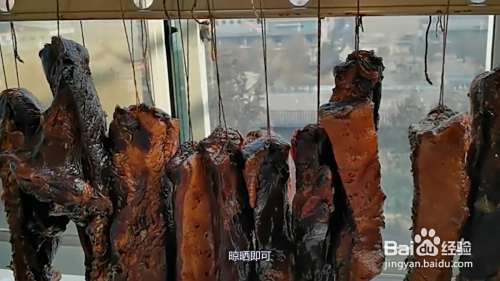 将调制好的腌料涂抹在切好的五花肉上,腌制入味后悬挂晾晒,晒干后即可取下食用腊肉。