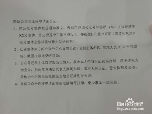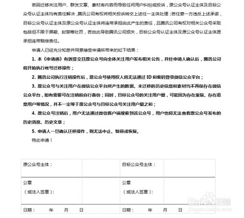 4.微信公众号迁移申请函需用电脑填写打印,至少准备一式三份。