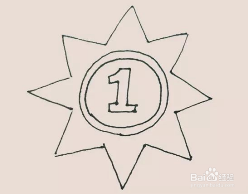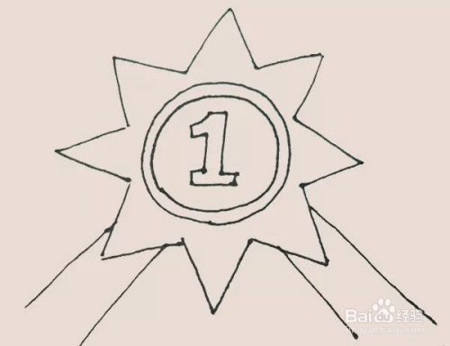 用向内的尖角将它们连起来,并画出两条边作为装饰,奖章上也能画上一些小线段装饰。