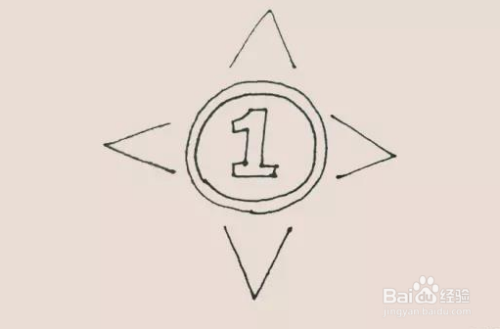 在上下左右,画上一个尖角的形状,但注意不要和圆形连起来。