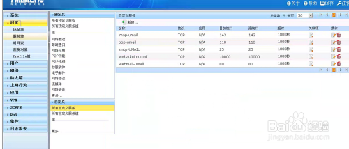Hillstone路由器自带了邮件相关的端口协议服季王务组,可以登录路由器找到,对象-- 服务里面