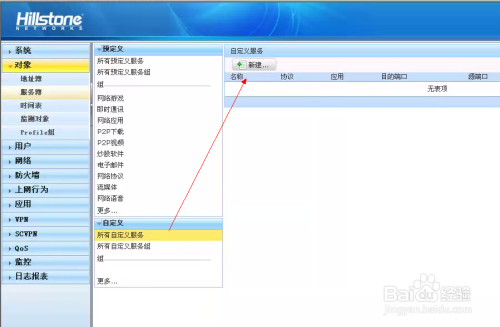 Hillstone路由器按照常规设置端口映射可能会不正常。 默认路由器里面有内置的协议组,使用协议组可以实现