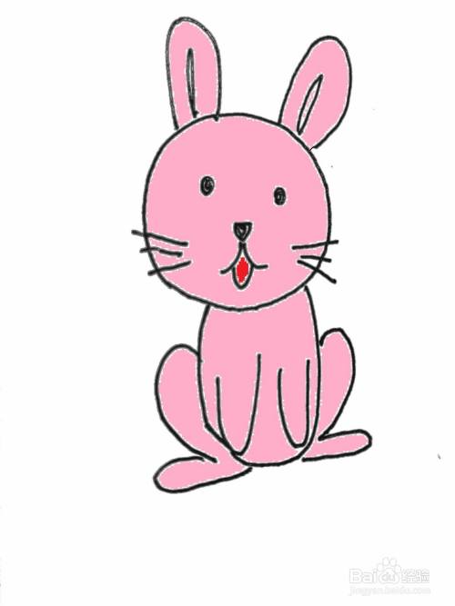 最后给小兔子涂上粉红色的颜料。简笔画小兔子就画好了。