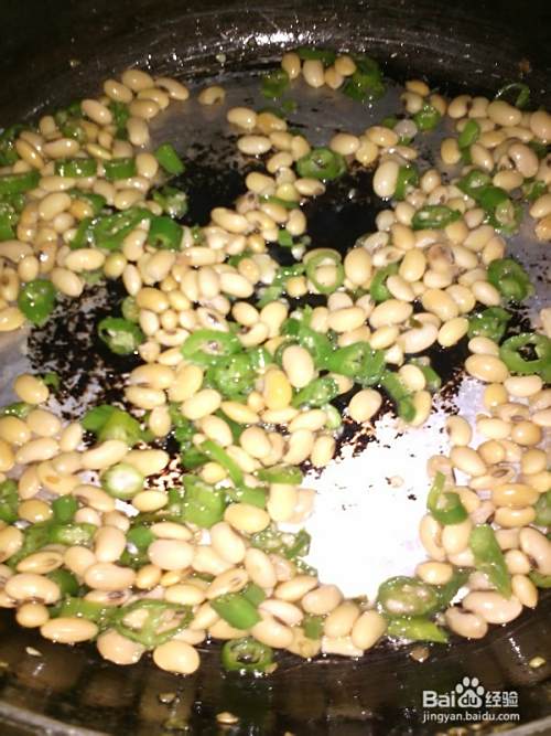 将炖好的黄豆加入一起清炒,加盖2分钟即可起锅装盘.