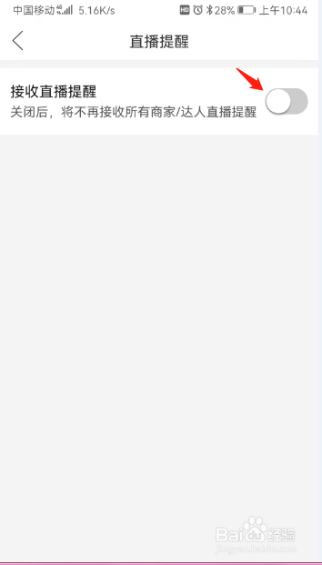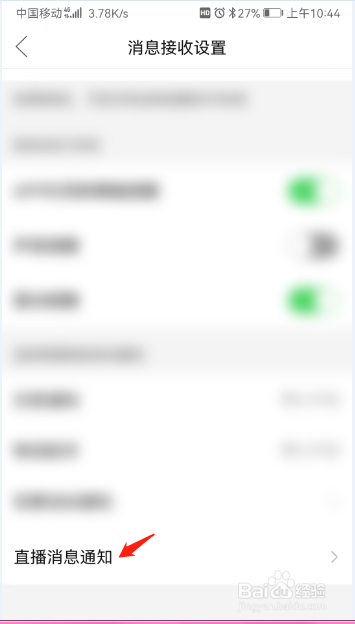 将接收直播提醒右边的开关关闭即可关闭接收直播提醒