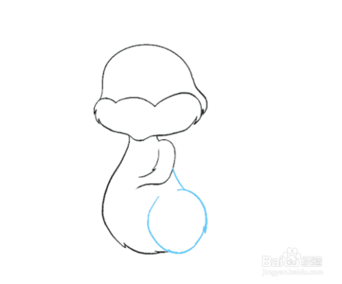 画出松鼠的臀部。为背部绘制一条弯曲的线,将手臂连接到臀部。