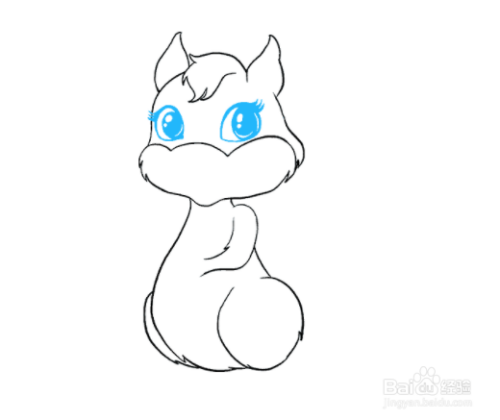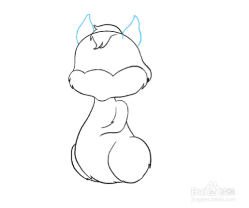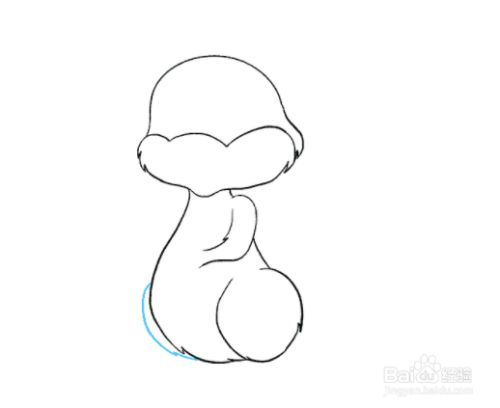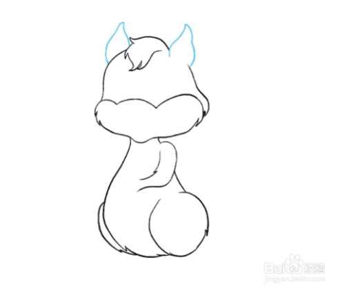 使用两条弯曲的线条对每只耳朵进行详细描述。将弯曲的线条从面部延伸到手臂,手臂延伸到臀部,将臀部延伸到尾部尖端。