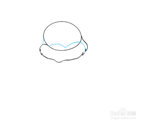 在椭圆形下方,使用一系列弯曲的线条勾勒出下颚的轮廓。