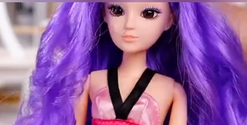 把芭比的头发散开,在尾部用彩笔涂上颜色,这样芭比就得到了炫酷发型