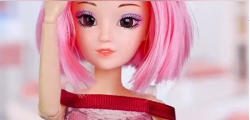 芭比头发太长,先用皮套扎起来,然后剪掉,这样的短发很好看