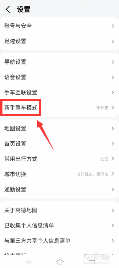 最后点击一下栏目中的新手驾车模式进入开启即可。