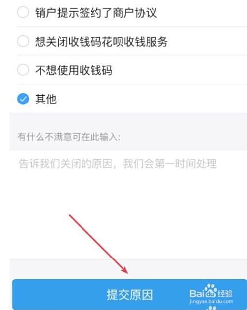 进入关闭商家服务入口页面后,我们选择一个想要关闭的原因,然后点击提交原因即可
