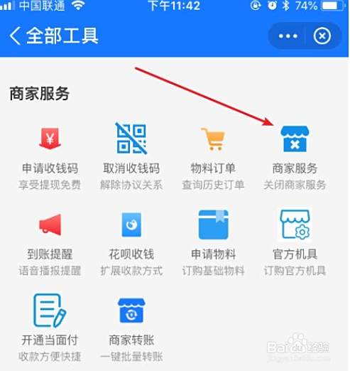 打开全部工具页面后,我们下滑页面找到商家服务,然后点击关闭商家服务
