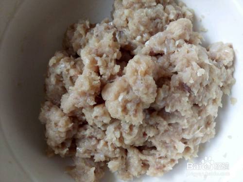 剁好的鱼肉放碗里加少许料酒,一点点生抽,一点点盐,一点点胡椒粉,一点点生粉(总之就是大概5ml的量吧,不要咸,)