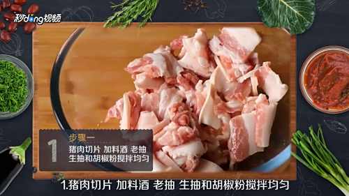 猪肉切片,加料酒,老抽,生抽,和胡椒粉搅拌均匀。