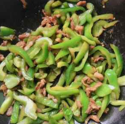 继续等待五分钟左右,菜椒炒肉就完成啦,出锅的时候可以适量加入葱花调香。大家赶紧来试试吧。