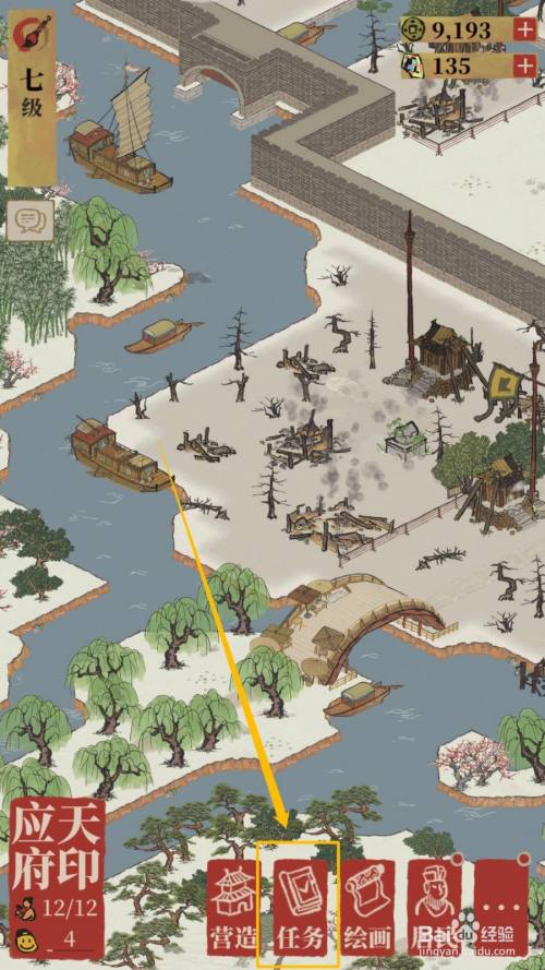在“江南百景图”主界面中,点击下方的“任务”按钮。